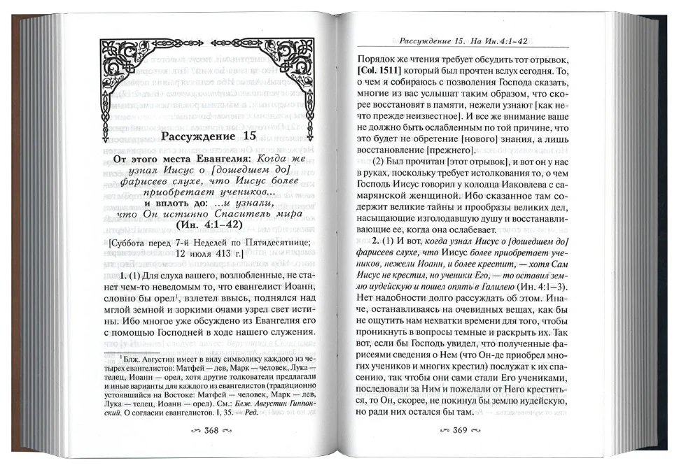 Впервые издаваемое на русском языке творение ярко показывает личность блаженного Августина и его пастырский подход в деле проповеди Евангелия и объяснения его своей пастве. Оно насыщено богословским, а также полемическим, против ересей и расколов, и нравственным содержанием. В сочинении проявляются как общецерковная позиция по богословским вопросам, так и положения, свойственные лично святителю, и присущие западной богословской традиции в целом.