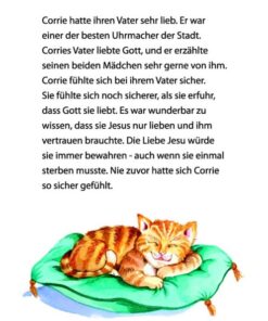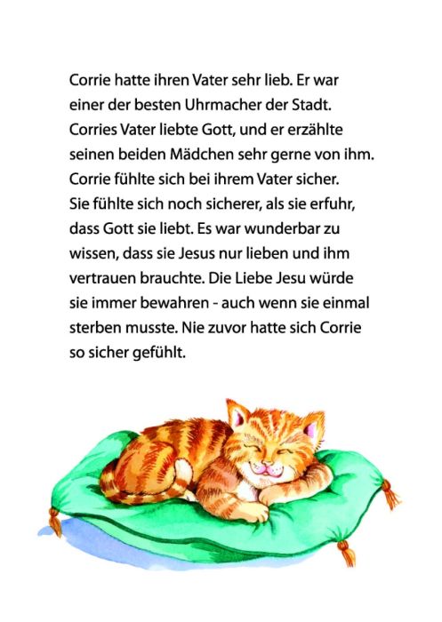 Corrie, die Tochter des Uhrmachers, macht sich Sorgen, denn es ist Krieg, und ihre jüdischen Freunde verstecken sich in einem geheimen Raum. Corrie lernt in dieser Zeit, dass sie auf Gott vertrauen kann, selbst wenn sie große Angst hat.